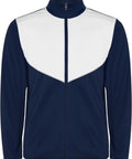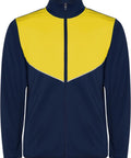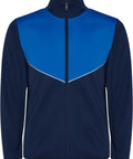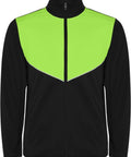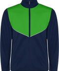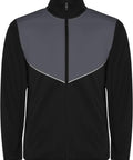 No viegla un elastīga auduma. Jaka ar kontrastējošu krāsu un šuvju apdari uz krūtīm. Augsta apkakle ar kontrastējošām šuvēm. Centrālais priekšējais rāvējslēdzējs. Sānu kabatas. 2x2 rievotas manžetes un jostasvieta. Bikses ar elastīgu jostasvietu un aukliņu. Kontrastējoša sānu daļa ar šuvju apdari. Rāvējslēdzēja apakšmala. Interlock adījums, 100% poliesters, 225 g/m².